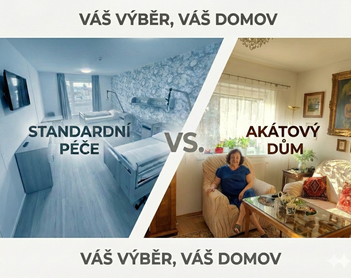 Akátový dům je dům s pečovatelskou službou, který však rozsahem a kvalitou péče plnohodnotně nahrazuje klasické domovy pro seniory. Abychom vám usnadnili rozhodování, shrnuli jsme hlavní rozdíly v našem přístupu a fungování: